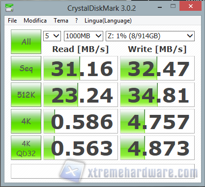CristalDiskMark è un software in grado di rilevare la velocità di scrittura e lettura dei dischi rigidi.
